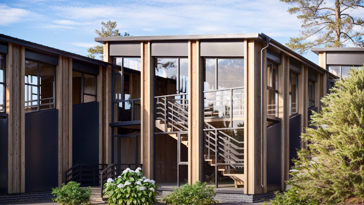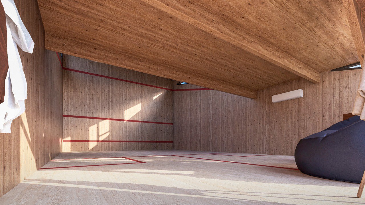SPORTBOX — это модульный мини-спортцентр из CLT и клеёного бруса, полностью готовый под сквош.